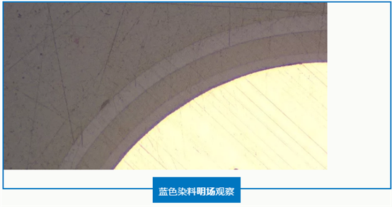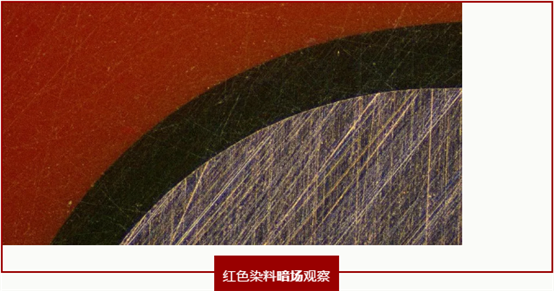 暗場狀態下,染料顏色比較明顯,但是未顯示出漆包線漆的層次,同時因暗場為環形光源對劃痕比較敏感,樹脂和漆包線漆上的劃痕顯示清晰,會干擾測量;
