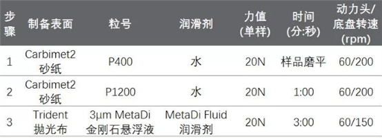 為滿足大批量質檢客戶時效性要求,3μm拋光后在金相顯微鏡下觀察樣品,制樣步驟如下: