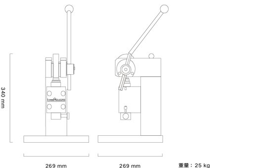 氣壓切片取料機主要配合硫化試驗機, 采用氣壓驅動汽缸壓縮切刀之原理,切取標準規格橡膠類材料之試樣,以供硫化試驗用.